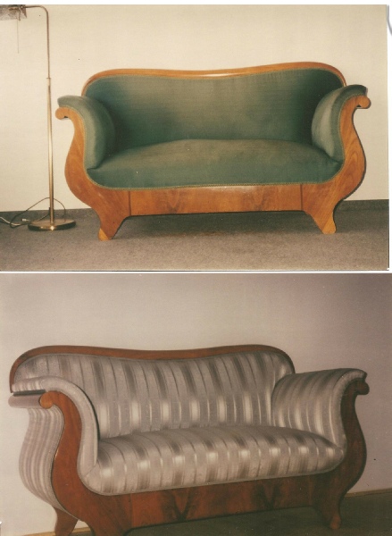 Das Sofa wurde komplett aufgearbeitet - inkl. Holzarbeiten, polieren der Oberfläche und polstern.